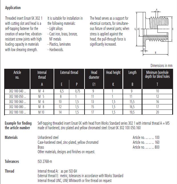 302-1型南通自攻螺套是一种新型的紧固件,使用后能够加强螺纹强度。产品有内外牙,将其嵌入塑料,铝合金,铸铁,铜等较软材料内,形成的内螺纹孔就可以具有较高的强度。